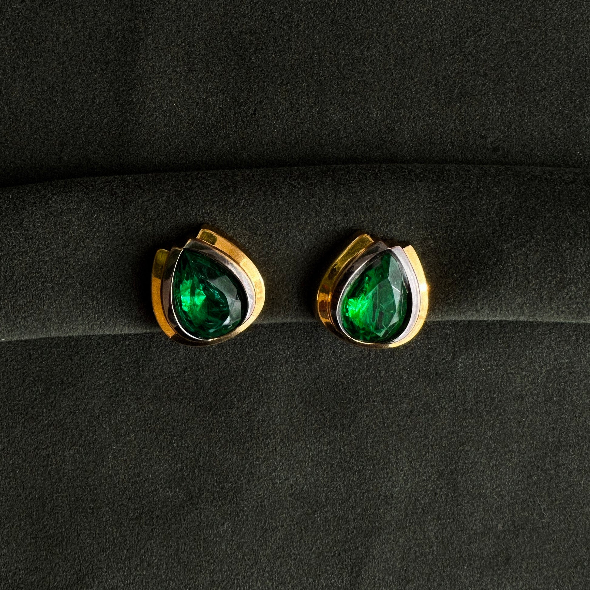 Lanvin clips with emerald-toned stones have the "Made in Germany" stamp, indicating their production by the German company Henkel & Grosse, later known simply as Grosse. This company also crafted jewelry for Christian Dior.